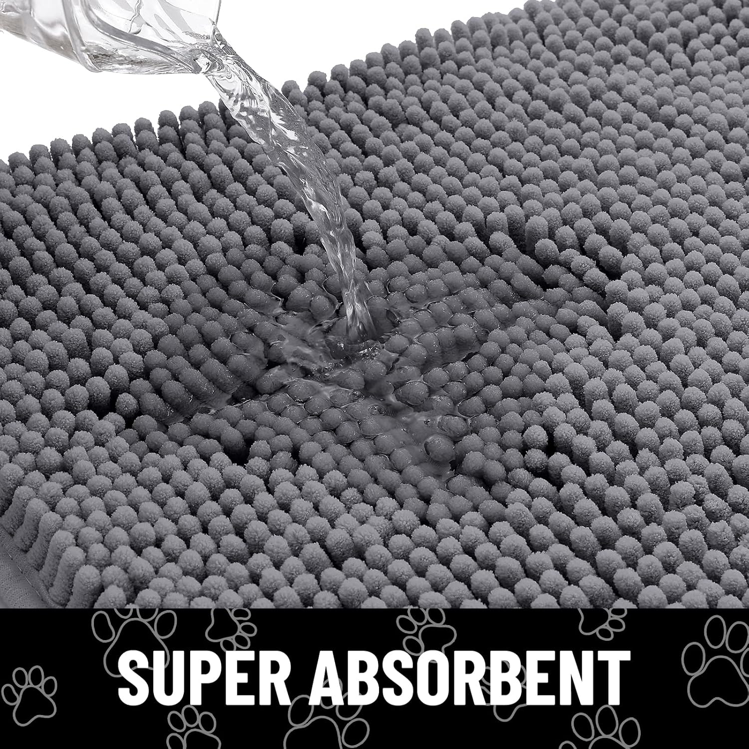 Smiry Dog Door Mat for Muddy Paws, Absorbent Dirt Trapper Non Slip Quick Dry Washable Chenille Mat for Mud Dogs, Entry Rug for Indoor and Outdoor (36x24 Inches, Dark Grey and Black)
