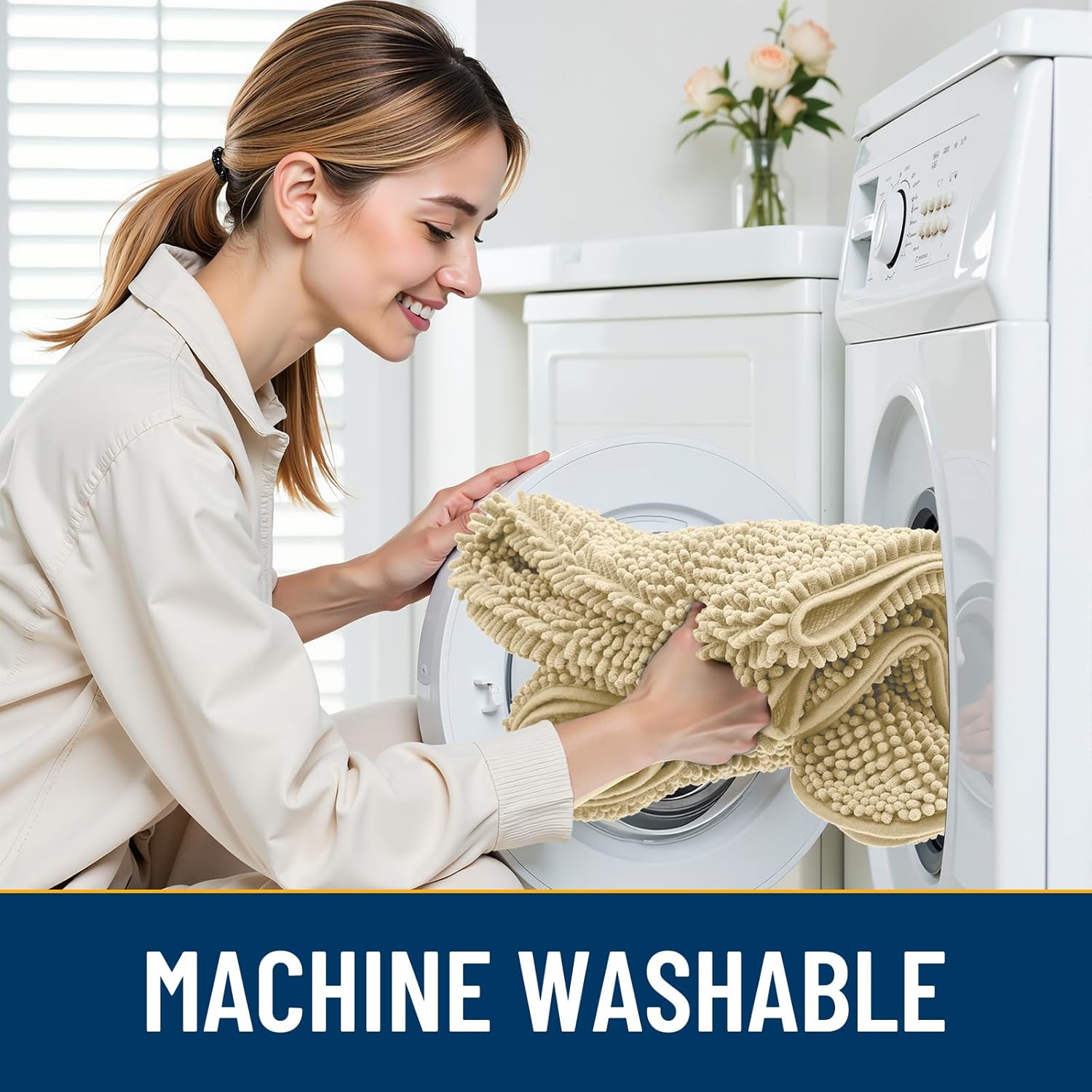 - [Absorbent and Dirt Trapper] High-density chenille dog mat, super absorbent and dirt-catching, whether wet after shower, muddy or moisture bring back by dogs, it can absorb well, so that you and your favorite pet can say goodbye to the wet and mud. It's an excellent choice for use as an entryway door mat, a welcome door mat or a dirt-trapping door mat.