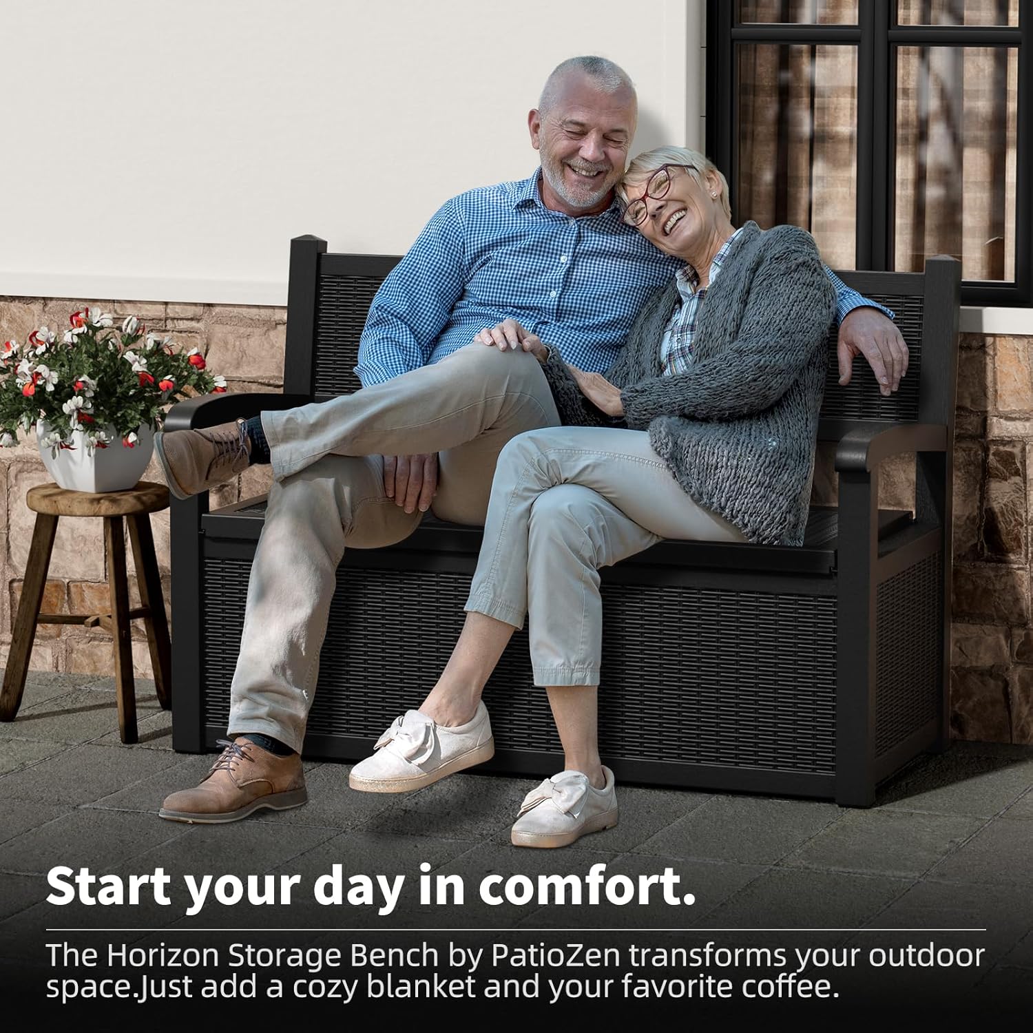 • WATERPROOF AND FADE PROOF : Crafted from high-quality, eco-friendly resin, the EasyUp storage bench is designed to be waterproof and UV-resistant, ensuring excellent durability. It withstands harsh sun and rain, maintaining its original appearance and strength in any season, making your outdoor life easier and worry-free.