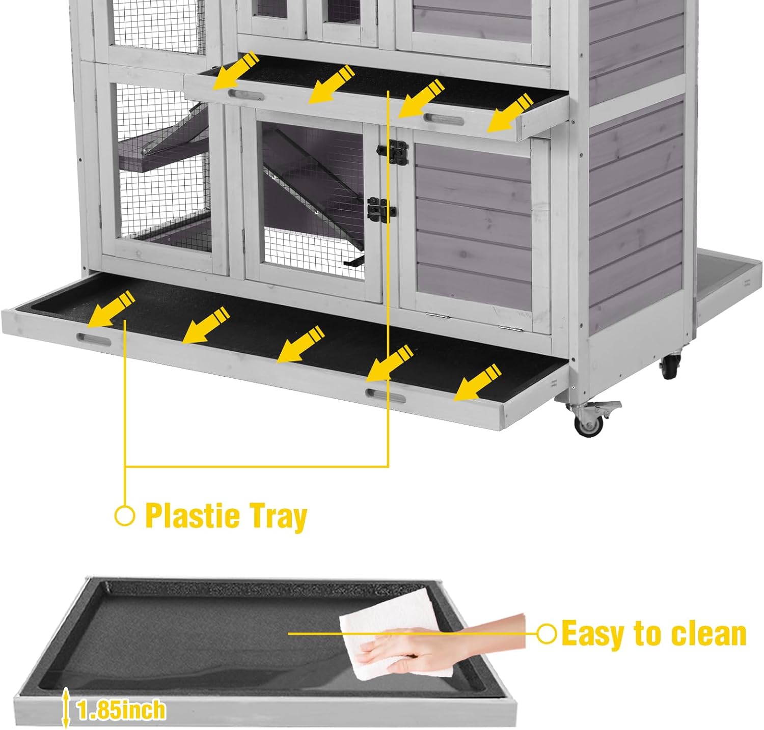- šššš© šššš¤ - šš«šØšØš ššØš®šš„š šš«šš²š¬ - Two deep, leak - proof plastic trays make cleaning effortless, ensuring no spills or rust. A premium feature of this rabbit hutch for lasting hygiene