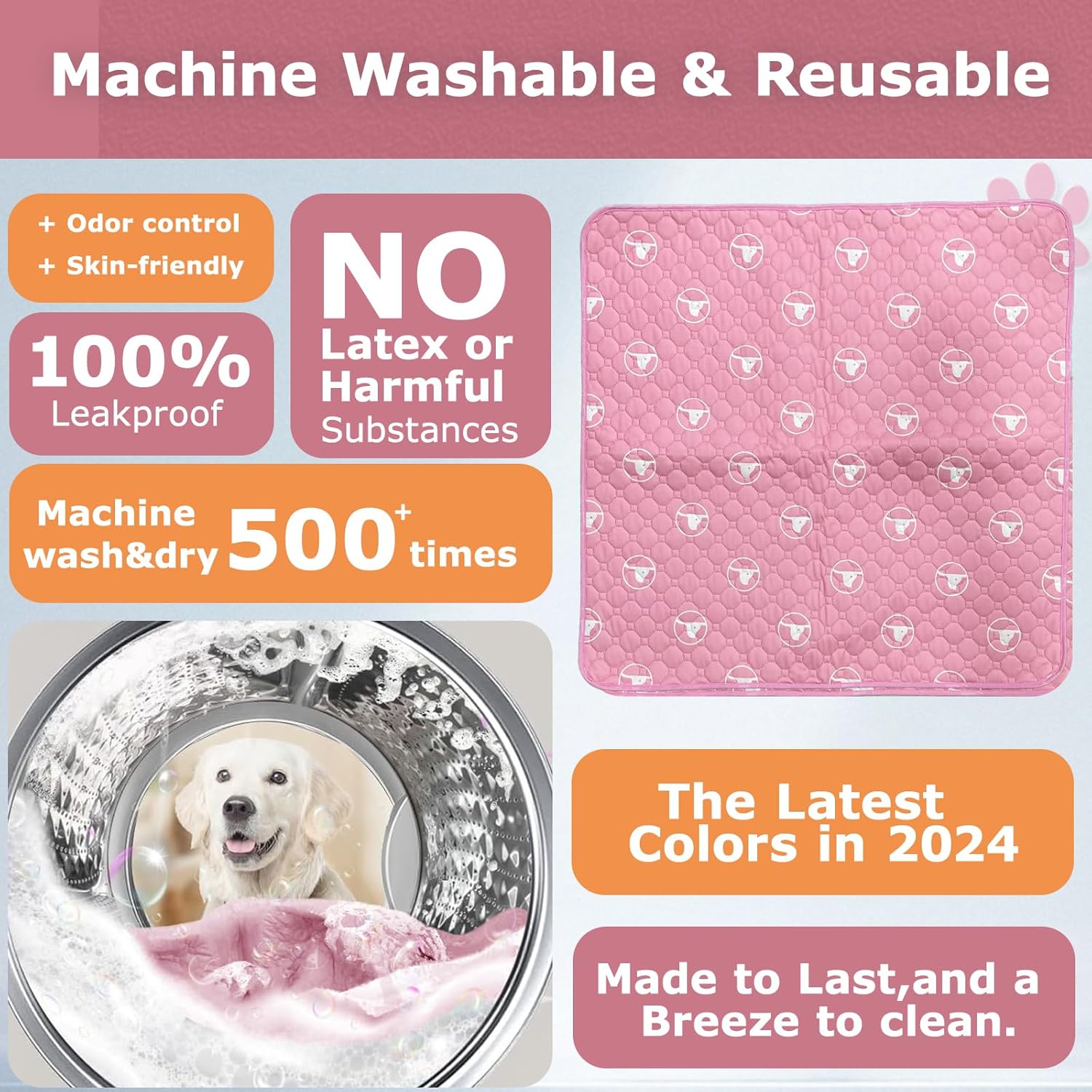 PJYuCien Washable Dog Playpen Mat, 2 Pack 36”x 36” Pink, Leak-Proof Reusable Puppy Pee Pads, Non-Slip Pee Mat for Whelping Pads, Crate, Potty Training, Puppy (Note: Mat Only, Playpen Not Included)