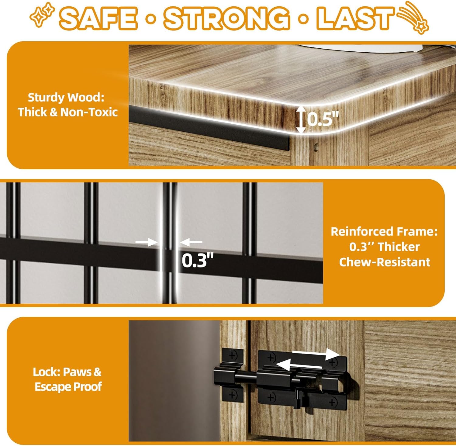 - Space-Saving Double Door: Features an innovative "lift-and-push" front door that opens upward, saving space and preventing accidents. Double door design offers easy access for cleaning, placing beds, or helping your pet in and out