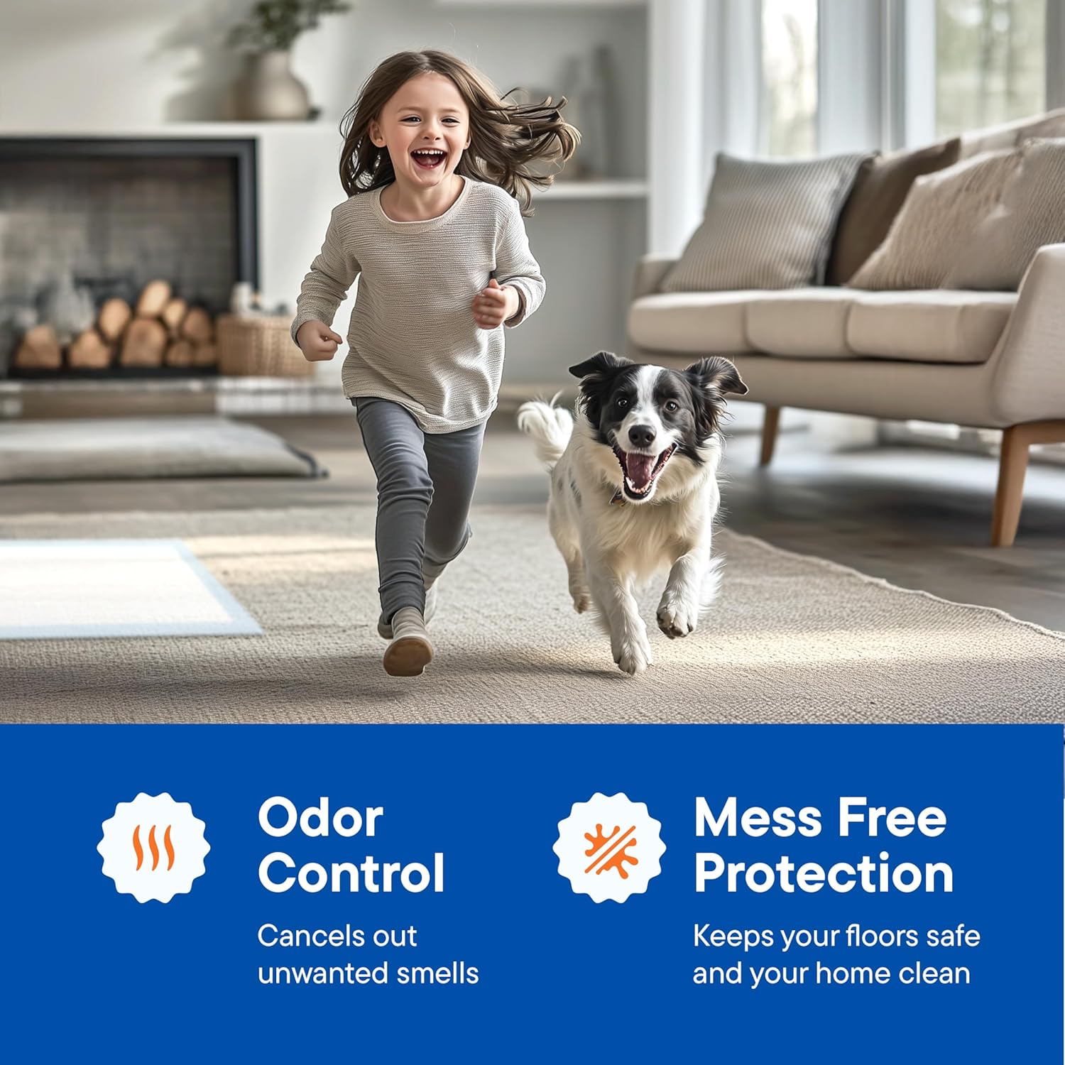 - HEAVY ABSORBENCY — Premium XXL puppy pads hold up to 4 cups of liquid and dry in just 30 seconds, preventing messy tracking and protecting floors. Built with LeakLock polymer beads that lock in liquid and control odor.